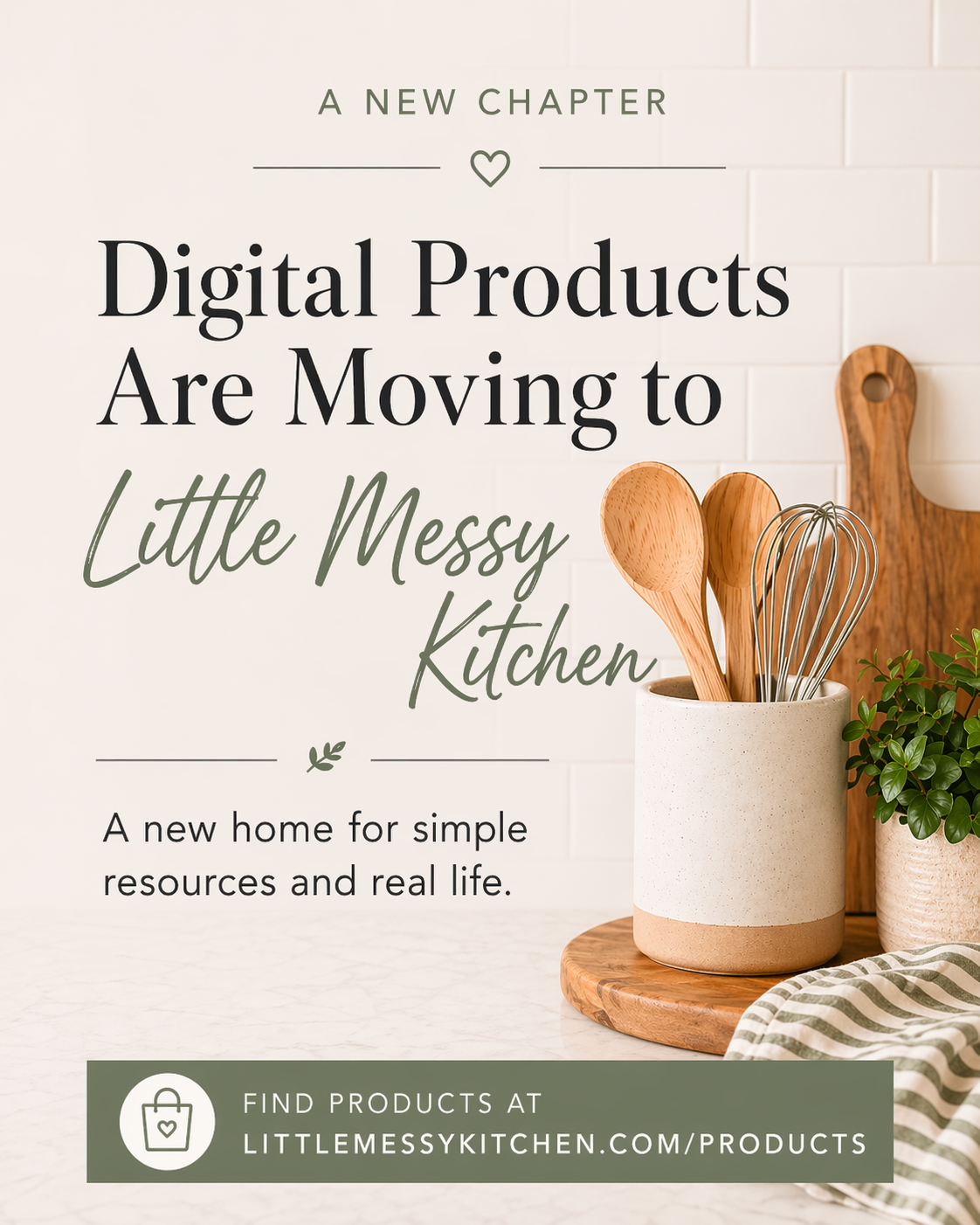Little Messy Kitchen already reflects so much of what I love to share — simple food, real life, practical ideas, and resources made for busy people and families. Moving the digital products here allows me to keep things more focused, easier to manage, and better connected for you as a reader and customer.